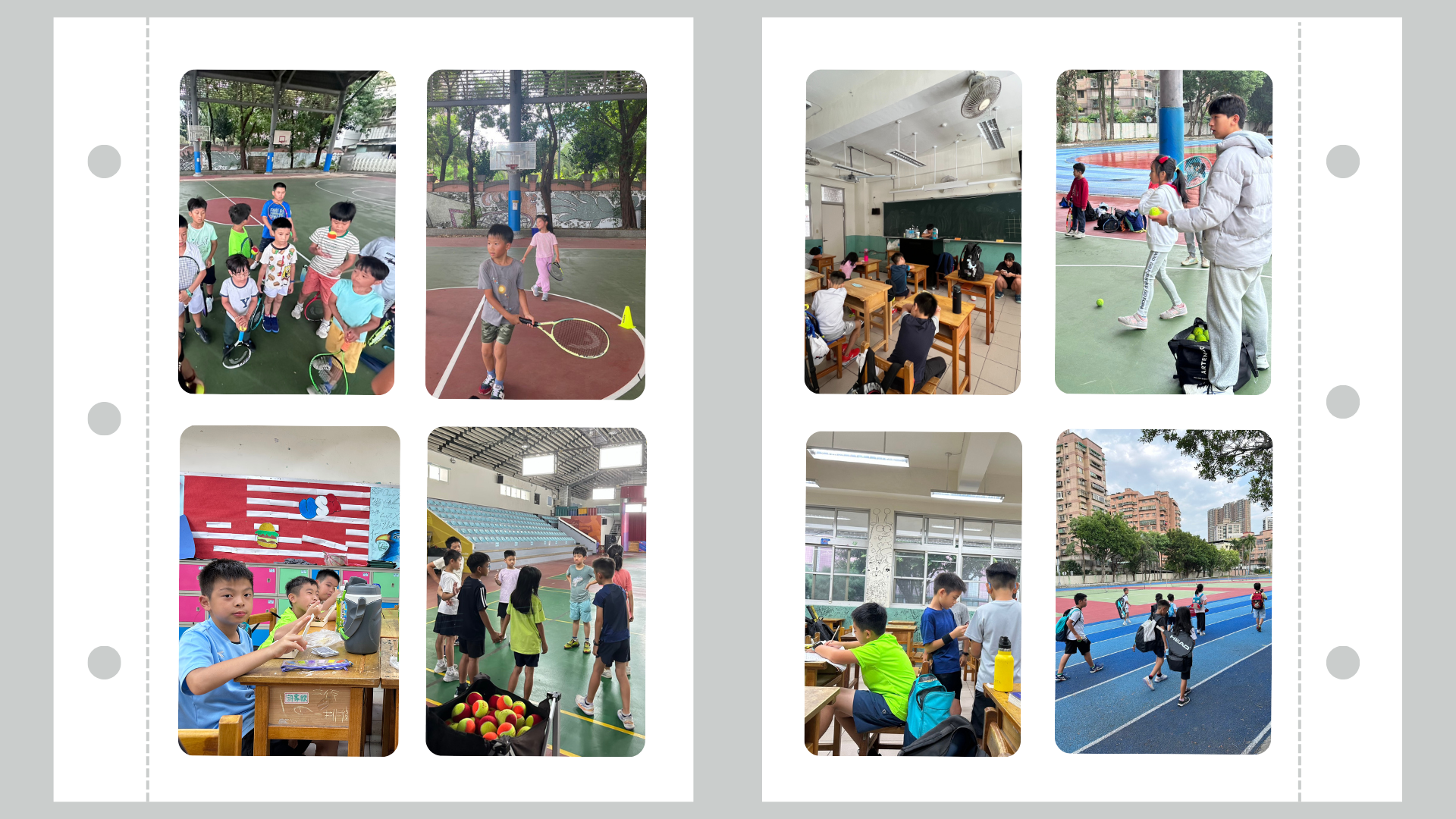 A4:教練會在校門口接送學員,一起前往網球場。